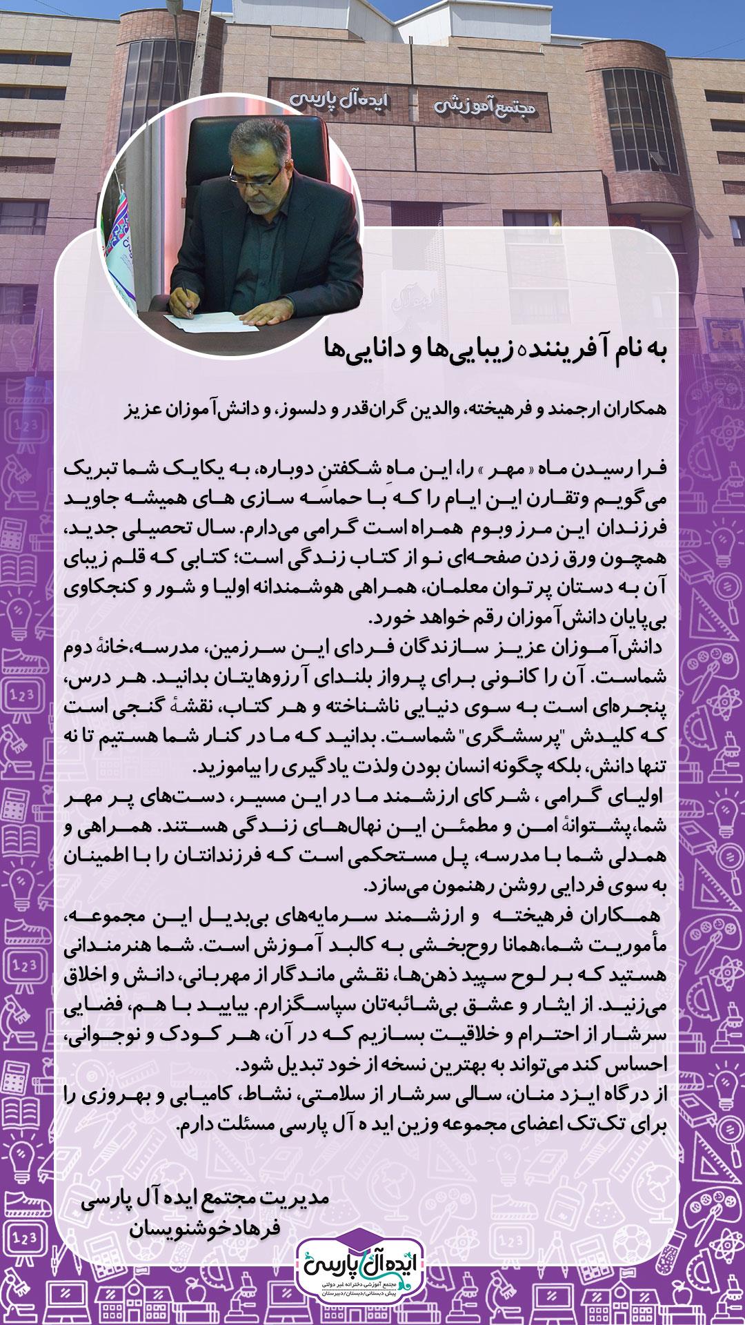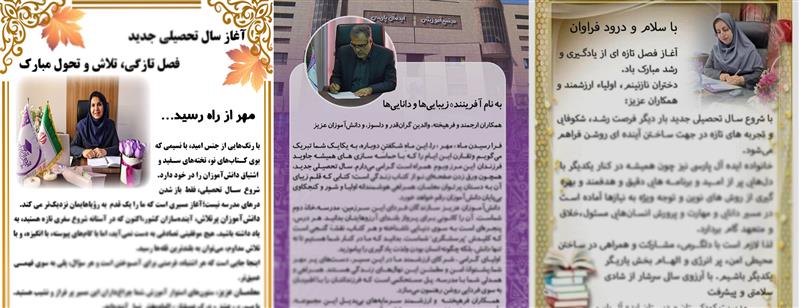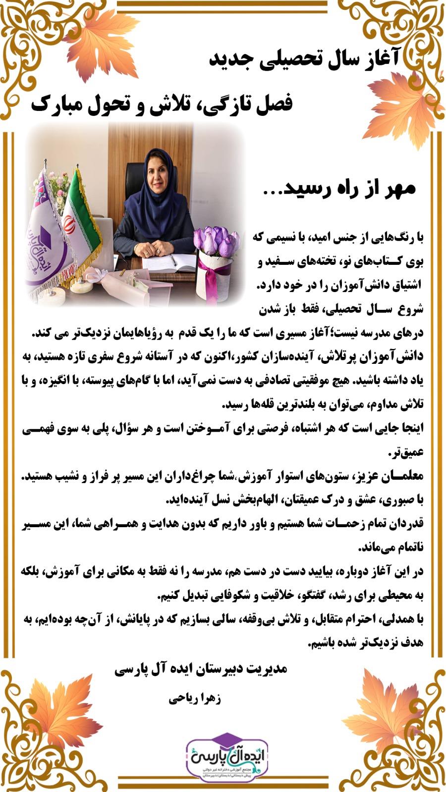 پیام تبریک مدیران - سال تحصیلی 1405-1404